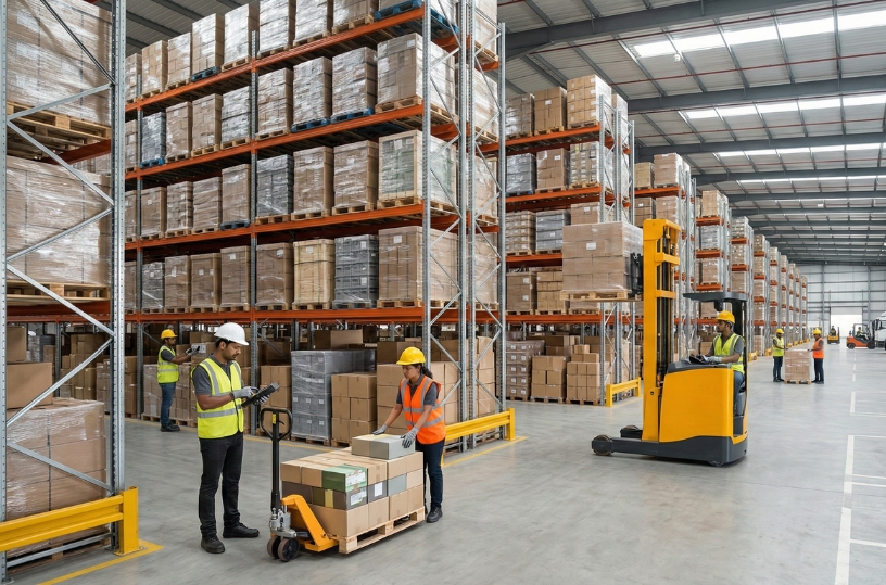 Our warehousing services are designed to streamline your supply chain by combining secure storage, smart inventory systems, and integrated logistics support under one roof. With 24/7 security, temperature-controlled environments, and scalable storage options, we ensure your goods are stored safely and managed efficiently. Our tech-enabled inventory tracking gives you real-time visibility and control, while our expert team handles receiving, sorting, and dispatching with unmatched precision.